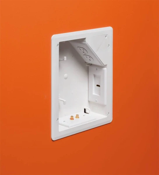 CablSupply.com’s TV Box for Versatile Home Theater delivers the ultimate in versatility for installing wall-mounted TVs in retrofit projects. There’s more room in the box for wires and you can install it horizontally or vertically to ensure proper positioning of low voltage connections behind the TV. CablSupply.com’s TV Box for Versatile Home Theater is ideal for home theater systems where multiple connections are needed for sound systems, satellite TV, cable TV, DVRs, and more.