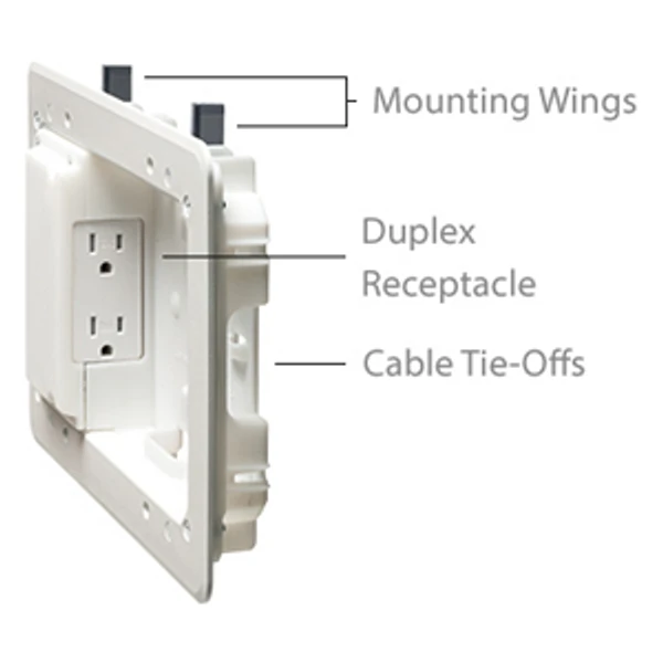 - (1) UL Listed Decorator style receptacle Save time with retrofit or new construction with convenient low-profile recessed 8 x 5 TV bridge kit
