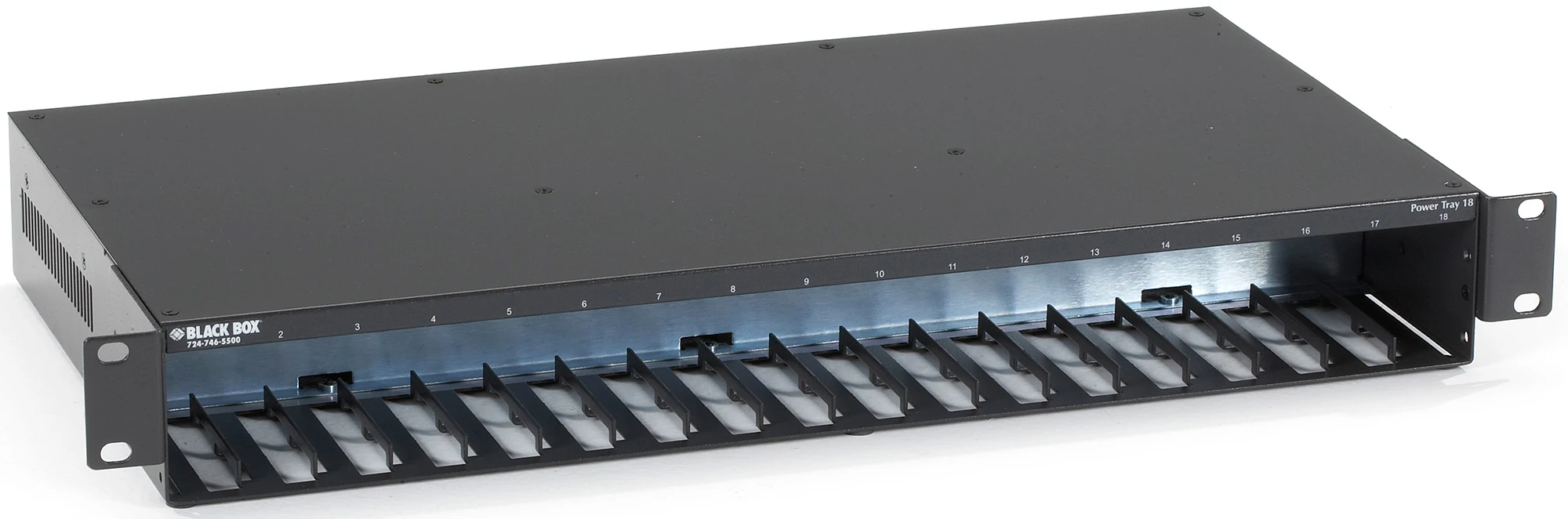 - 18 slot rackmount power tray for Multipower Miniature Media Converters