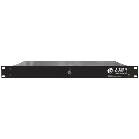 The HPC series consists of 5-1000 MHz passive RF combiners designed for use in a headend to combine the output of up to 32 single-channel devices such as modulators and processors. HPC is available in 8-, 12-, 24-, or 32-port models. All HPC models feature a compact design, high isolation between ports, low net combining loss, and RFI shielding for minimized egress/ingress interference. A front-panel -20 dB test port (75-ohm “F” type connector) allows testing of the unit’s output without interrupting the service.