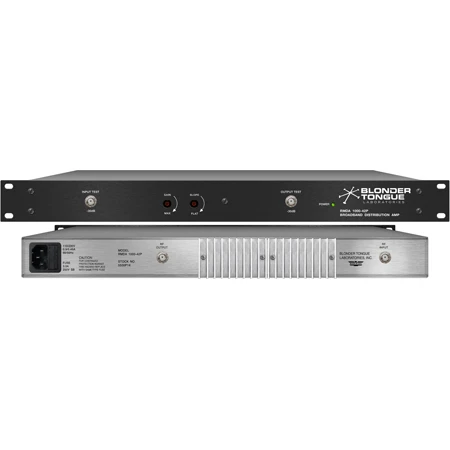 The Blonder Tongue RMDA 1000-42P is a completely self-contained broadband distribution amplifier, designed specifically for signal distribution systems requiring the low distortion characteristics only available using hybrid CATV integrated circuits. With a forward bandwidth of 54 to 1000 MHz and a gain of 42 dB, the RMDA 1000-42P is useful in either systems that use a “cable drop” as a signal source or as the launch amplifier in a headend.