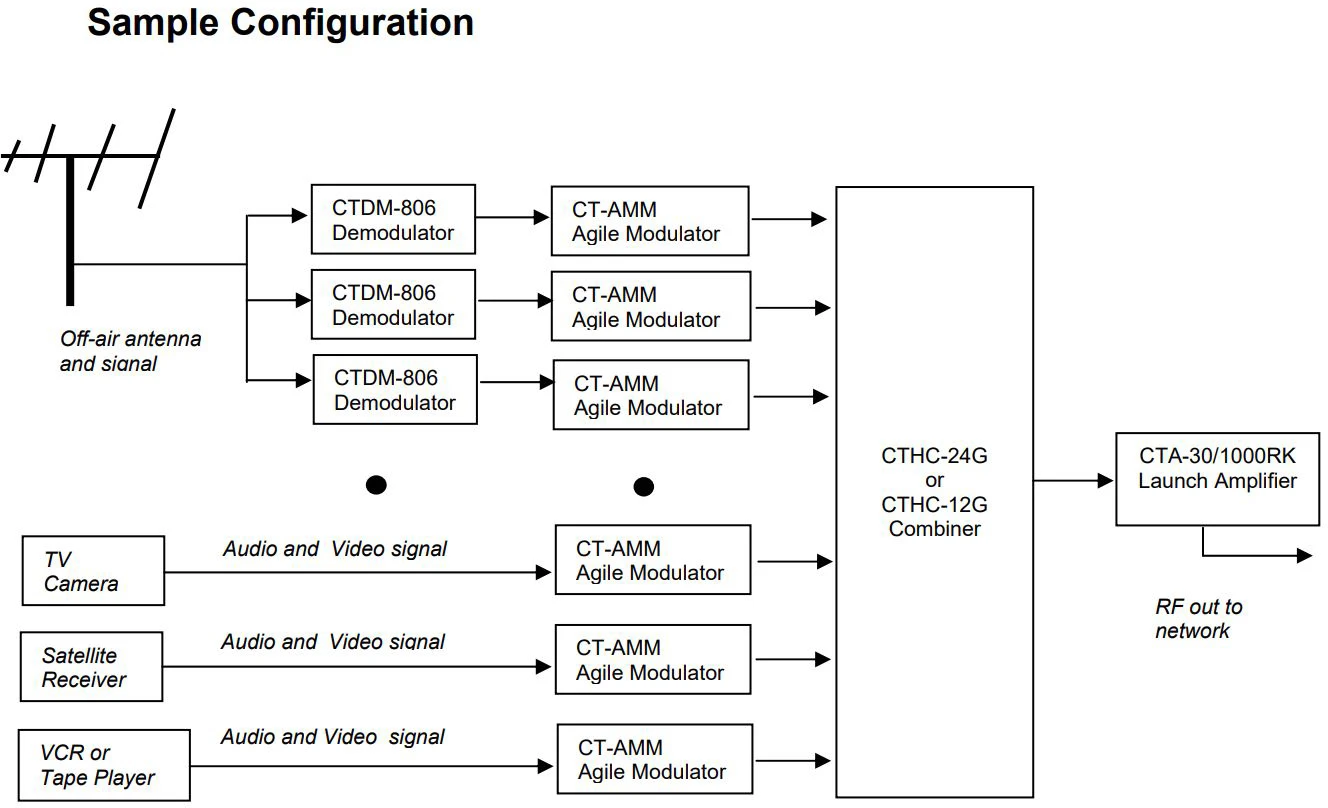 Commercial grade headends where the signals from multiple modulators and processors must be combined and distributed as RF over a cable distribution network.