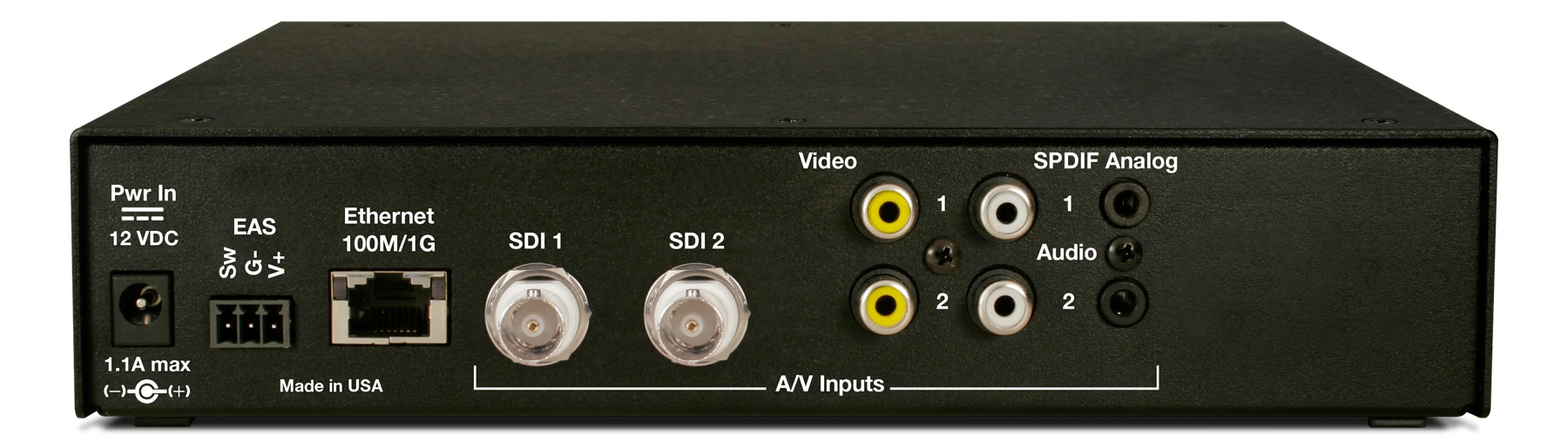 - Two Composite/CC video inputs for encoding, captioning, or EAS use