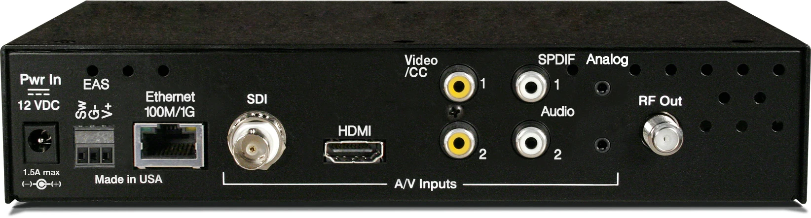 - Two Composite/CC video inputs for encoding, captioning, or EAS use