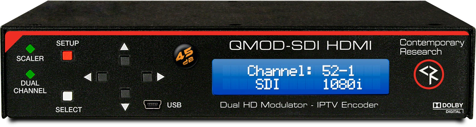 - Accepts stereo or PCM audio and converts to Dolby Digital AC-3/, with SAP dual-language capability.