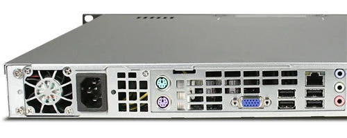 - Rear Ports: 4 USB 2.0 Ports, PS2 keyboard and mouse ports, VGA output, 10/100 Mbps Ethernet port