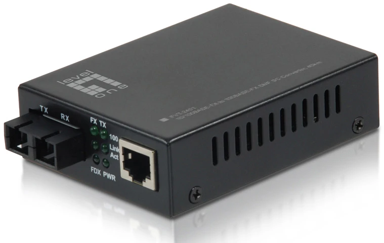 The LevelOne FVT-2401 SMF SC media converter is able to convert network signals between copper and fiber-optic based networks. The converter provides a 10/100Base-TX RJ-45 port, supports full duplex and half duplex switch connectivity and 10Base-T and 100Base-TX auto-sensing. Used in single-mode with fibre-optic cabling, this can extend a network range up to 40 km.