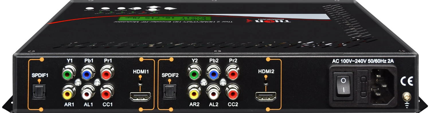 The Thor H-2ADHD-QAM-IPLL QAM/ATSC Analog and Digital HD(ADHD) encoder modulator is a multi-dynamic tool used to distribute any live HDMI/YpPbr/Composite/Component video source such as a cable TV STB, DVD player, Digital Signage Device etc, and broadcast that video on your own RF channel over your existing coax infrastructure. This easy to use encoder modulator is useful for any type of video encoding & distribution. Separate input for Closed Caption 608 is available through its own analog input. This unit can be just an encoder, a modulator, IPTV server, or all 3 at once. The 2ADHD is compatible with any HDMI/YpPbr source that will output an RF channel with perfect HD quality video up to 1080p60 that encodes in either MPEG-2 or H.264. Creating your headend with dozens of channels can be easily accomplished by stacking several units and daisy chaining the RF in’s & out’s, or by using an external RF combiner. This unit has built in tuning and modulation for both QAM and ATSC.
