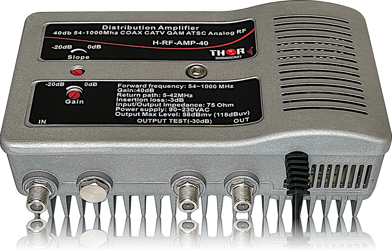 - 1x Thor H-RF-AMP-40 40db CATV RF Distribution Amplifier – Forward 54-1000MHz – Return 5-42MHz