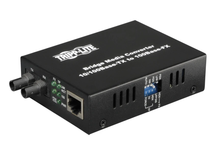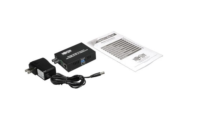 Tripp Lite’s N784-001-ST, 10/100 Media Converter, is an economical way to extend the distance (up to 2Km) of network nodes by converting Cat5/6 UTP cables to Fiber Optic. The Media Converter features automatic MDI/MDI-X configuration, and the UTP port senses the network speed automatically as well. Dip switches allow half or full duplex operation on the fiber port. Power supplied by either AC-DC adapter, or USB connection (switch selectable).